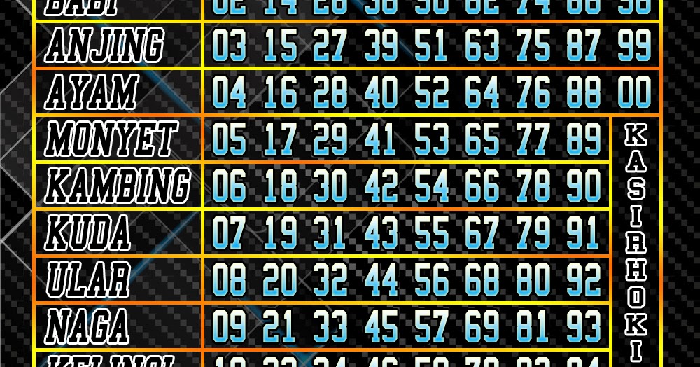 Shio kerbau jadi pilihan pertama pada 2021. Pilihannya adalah 01, 13, 25, 37, 49, 61, 73, 85 serta 97. Shio Tikus Shio tikus terdiri dari 9 angka sekaligus dengan pilihan sebagai berikut ini 02, 14, 26, 38, 50, 62, 74, 86, dan 98. Shio Babi Shio babi terdiri dari banyak pilihan, yakni 03, 15, 27, 39, 51, 63, 75, 87, dan 99. Shio Anjing TABEL SHIO 2021 Berlaku 12 Februari 2021 hingga 31 Januari 2022 SHIO ANGKA HOKI DALAM 12 SHIO Kerbau 01 13 25 37 49 61 73 85 97 Tikus 02 14 26 38 50 62 74 86 98 Babi 03 15 27 39 51 63 75 87 99 Anjing 04 16 28 40 52 64 76 […]